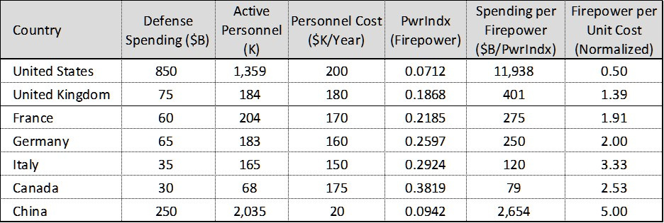Exhibit D: Firepower per Unit Cost (2025 Estimates)